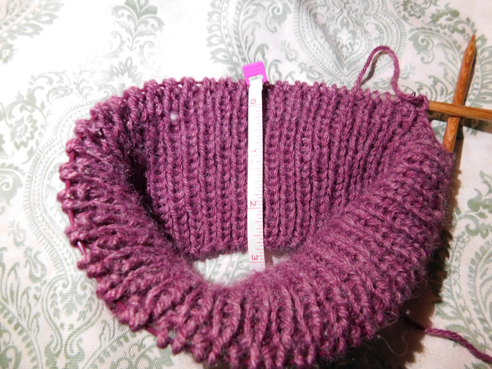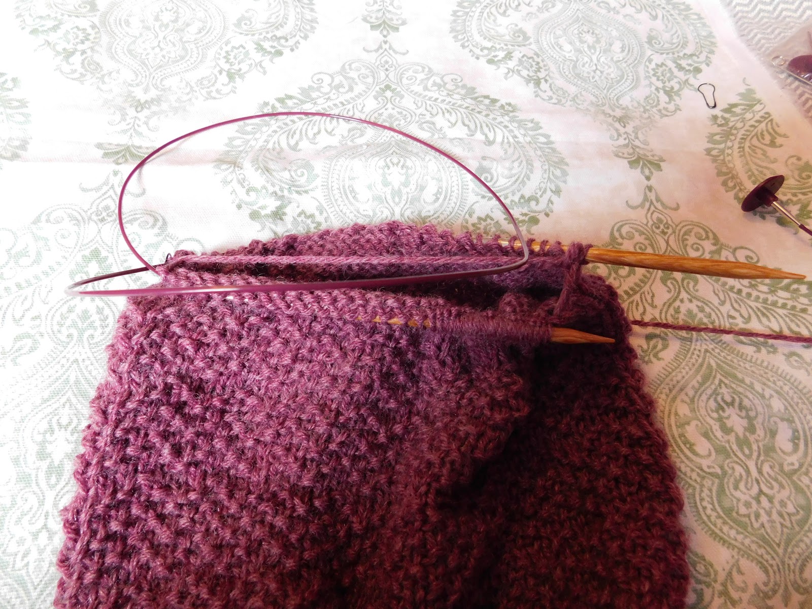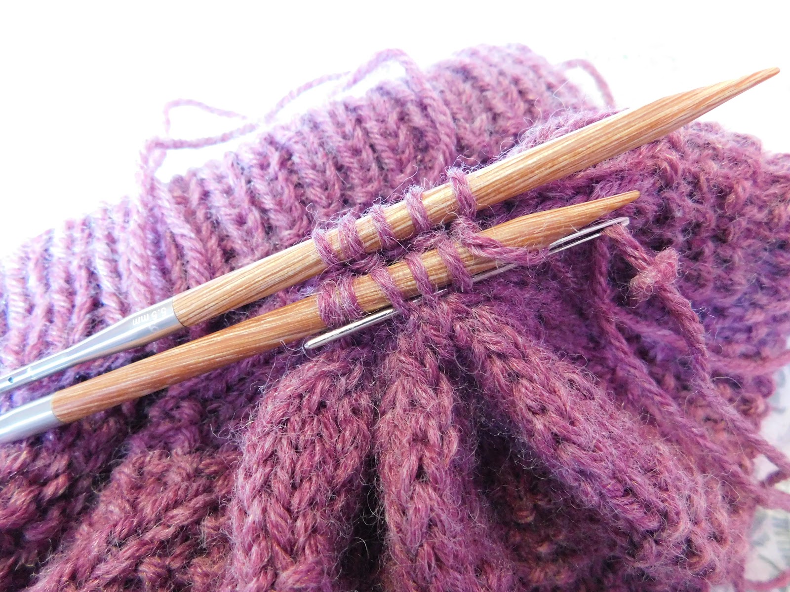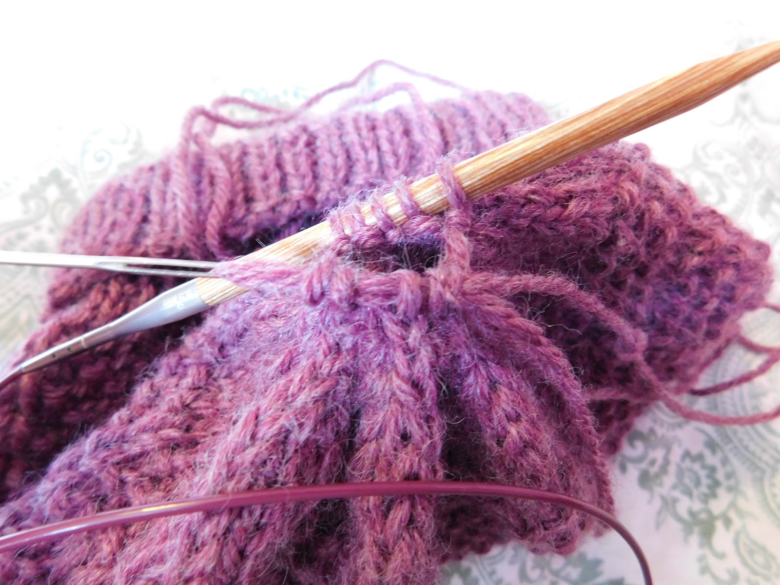 RND 21-60: *P3,K1*I decrease using the magic loop method, so in order to get my work onto a larger cable, I knit it onto the cable the round before I start my decrease. For this pattern I worked round 60, knitting onto a longer cable