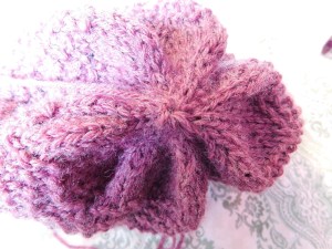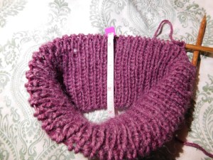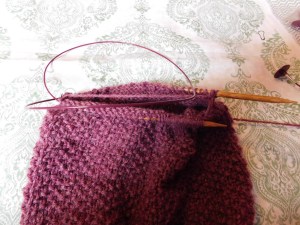 Once you have it on your longer cable you will separate the sides so that the side you will work first has 40 stitches and the side you will work second will have 44 stiches (this is so that when you decrease the number of stitches on each side will come out evenly)